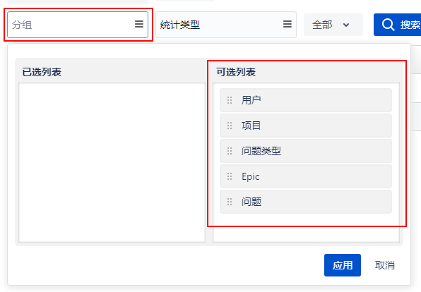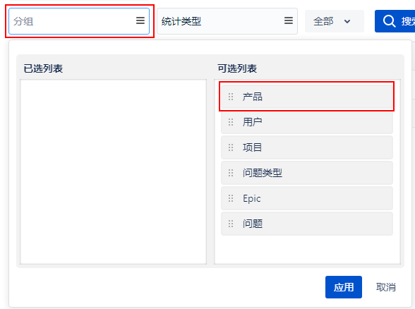 如果已选择了某个团队,那么项目选择框中只能选择该团队下的项目,用户选择框中只能选该团队下的用户,问题类型选择框只能选择已选团队下的问题类型,否则的话,项目、用户和问题类型选择框不受限制