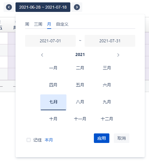 点击月,可继续选择时间范围(若时间类型为:月,则时间范围为月)