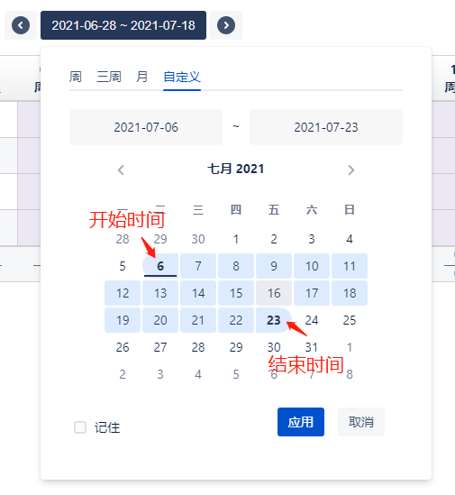 若勾选【记住】,将记住选择的时间类型,以及选择的时间范围(自定义类型不记住时间范围)