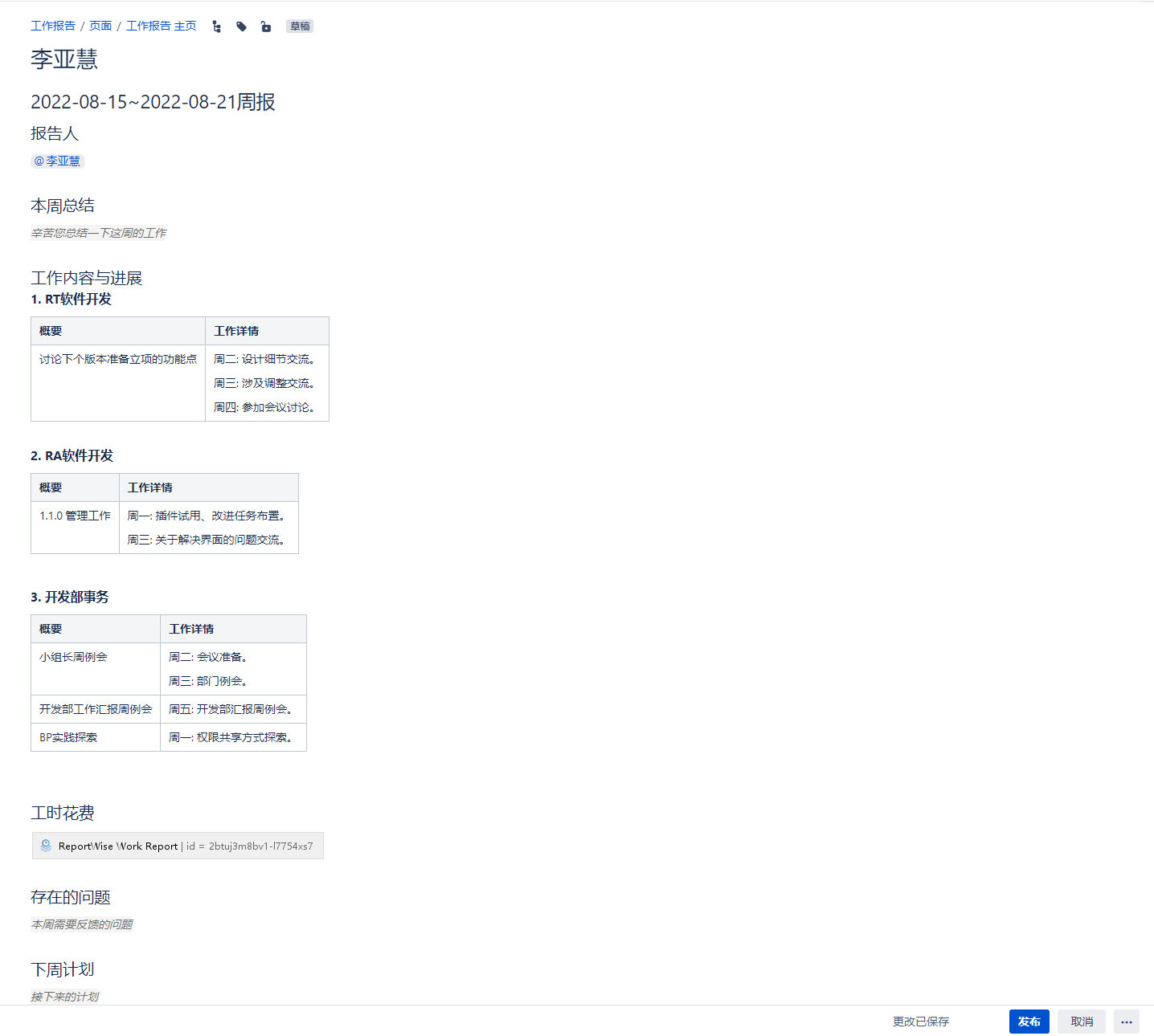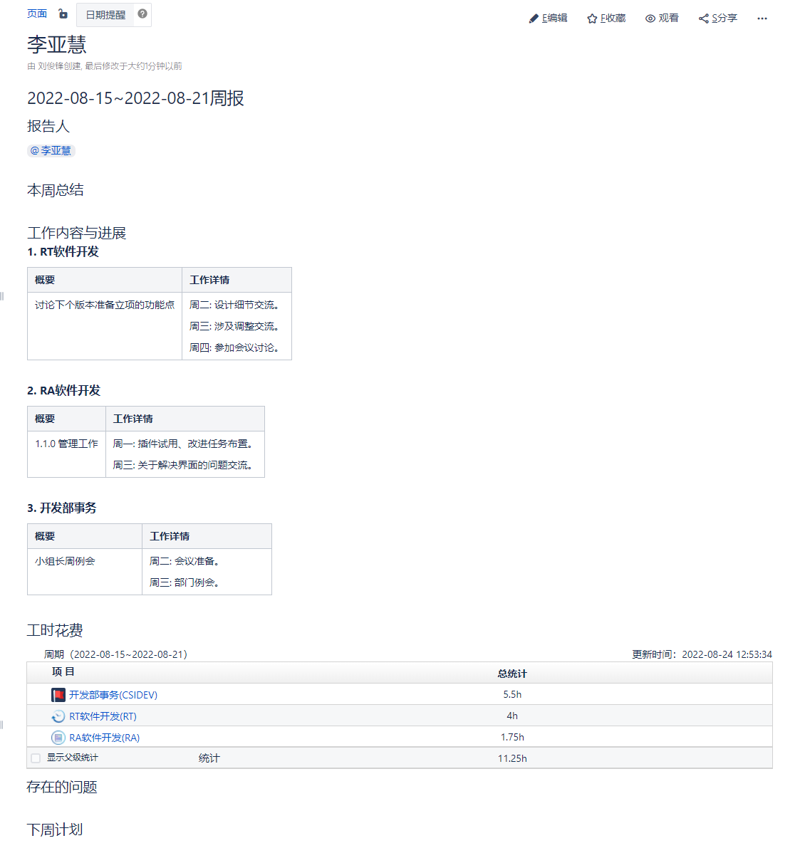Confluence 周报插件(Weekly Report)
