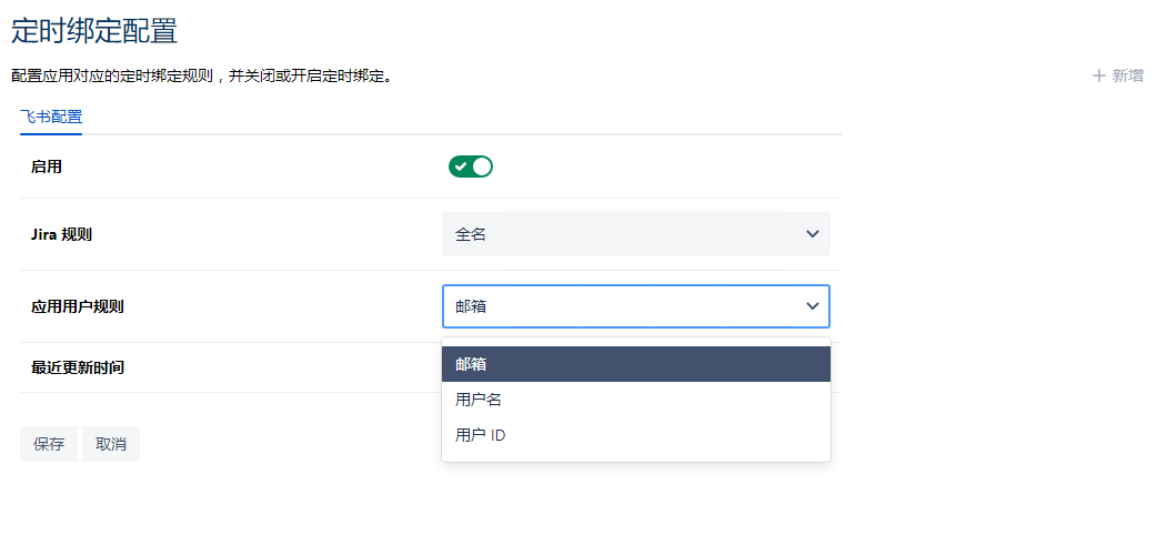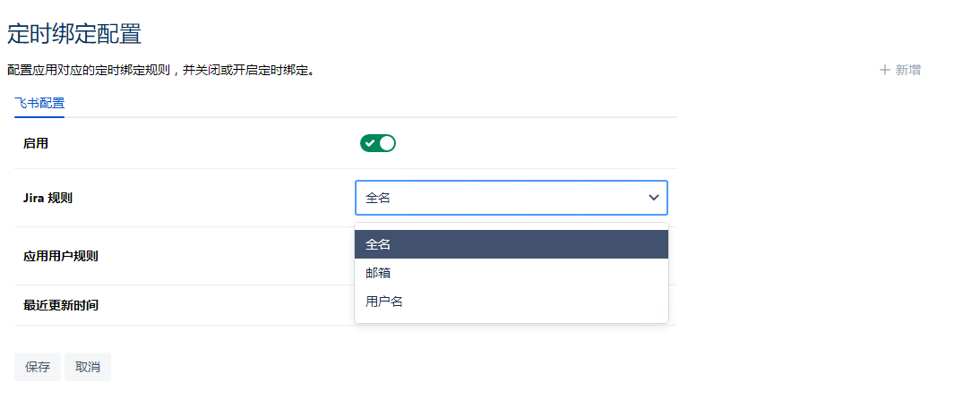 、可设置Jira规则(全名、邮箱、用户名),应用用户规则(邮箱、用户名、用户ID)进行定时绑定。