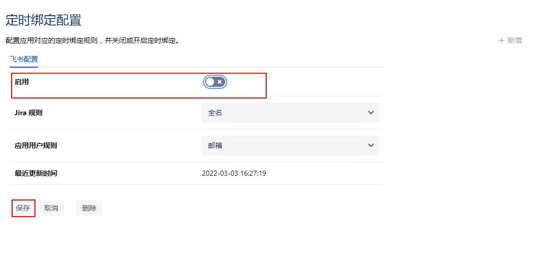 将“启用”关闭,单击“保存”即关闭定时绑定。