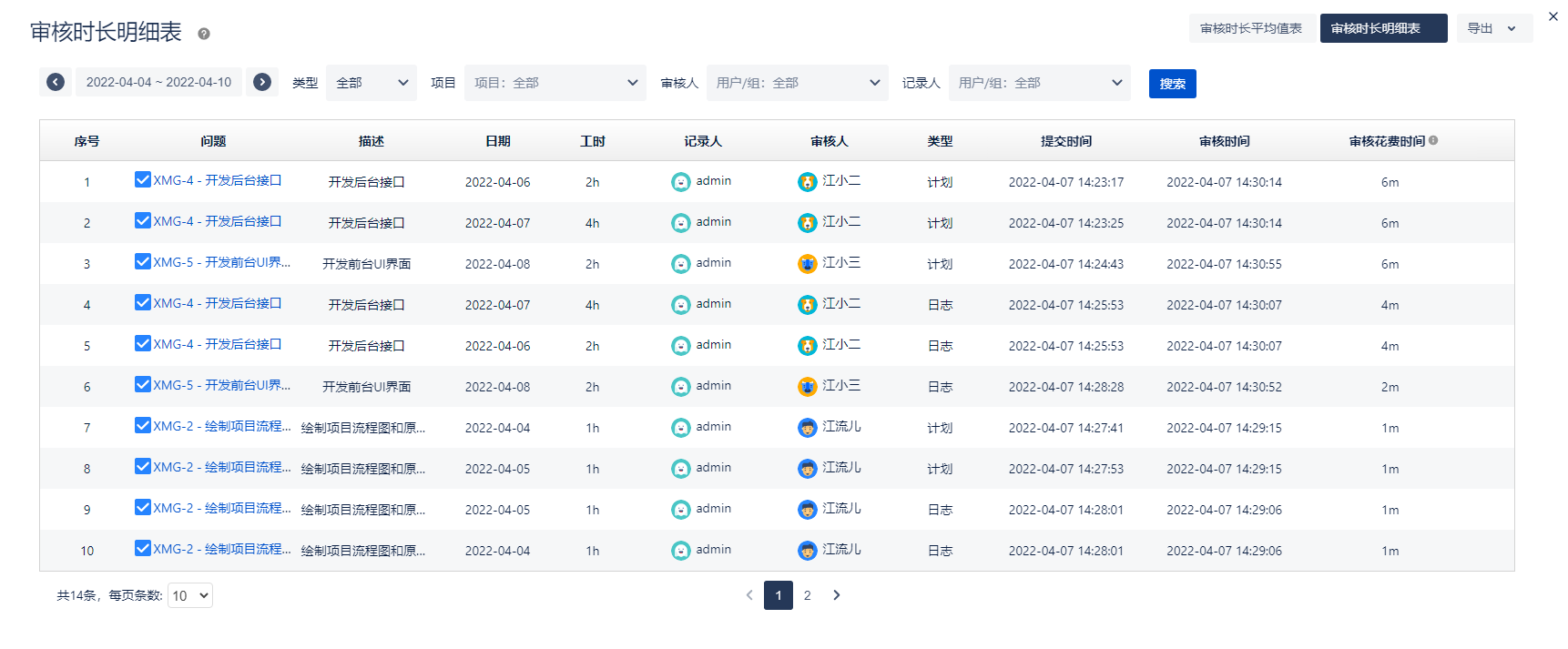 1.2 审核时长明细表
