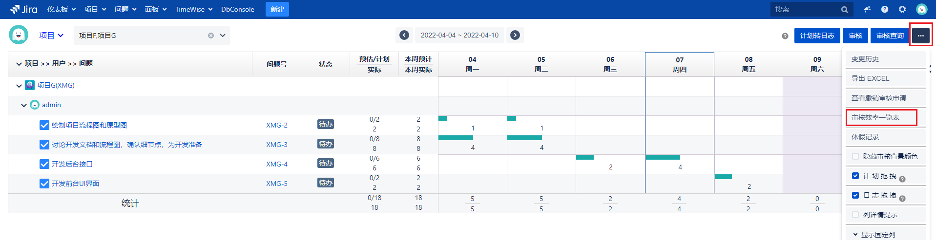 点击右上角的(····),显示下拉列表信息,点击【审核效率一览表】按钮