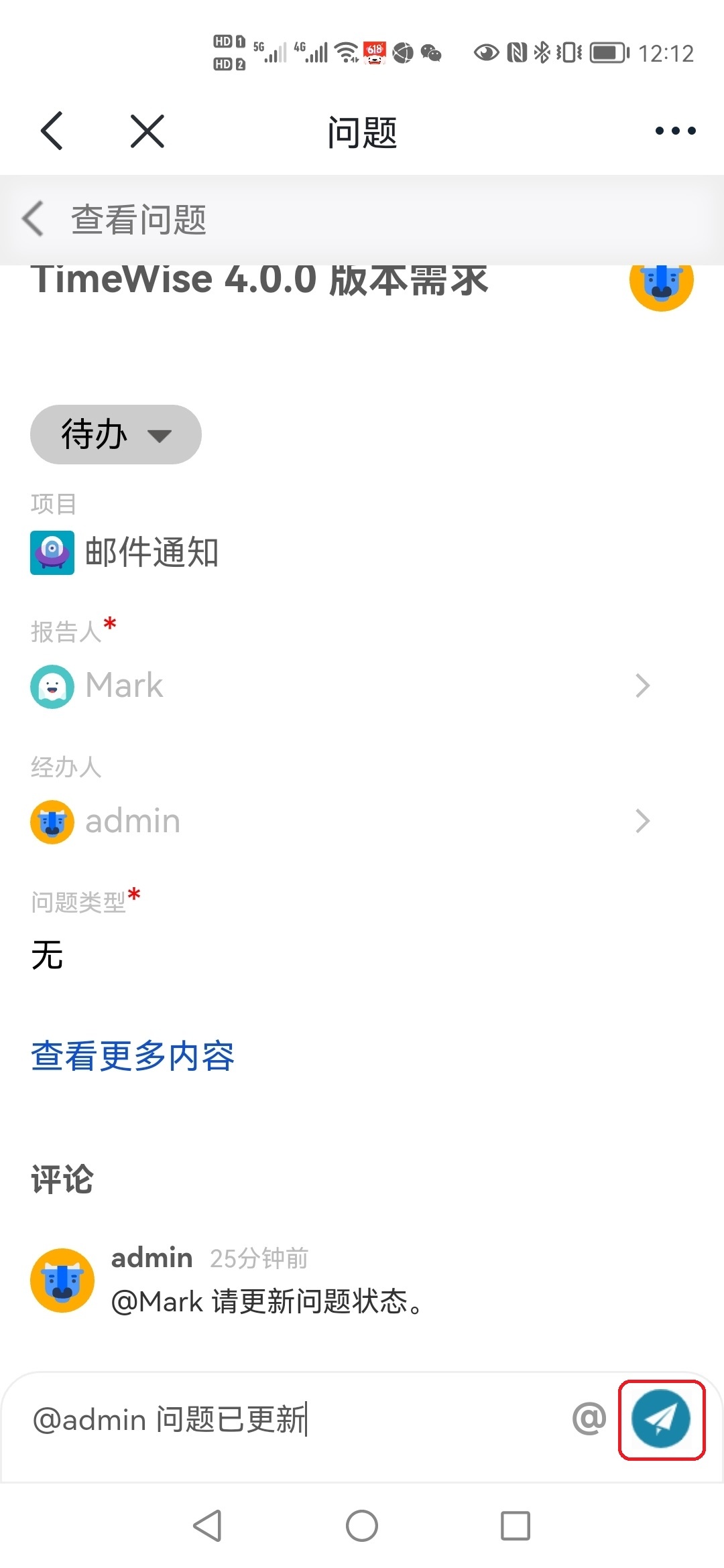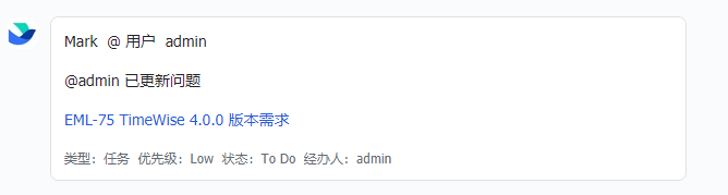 新增问题评论时,@指定用户后,可以向@的用户推送飞书消息通知。