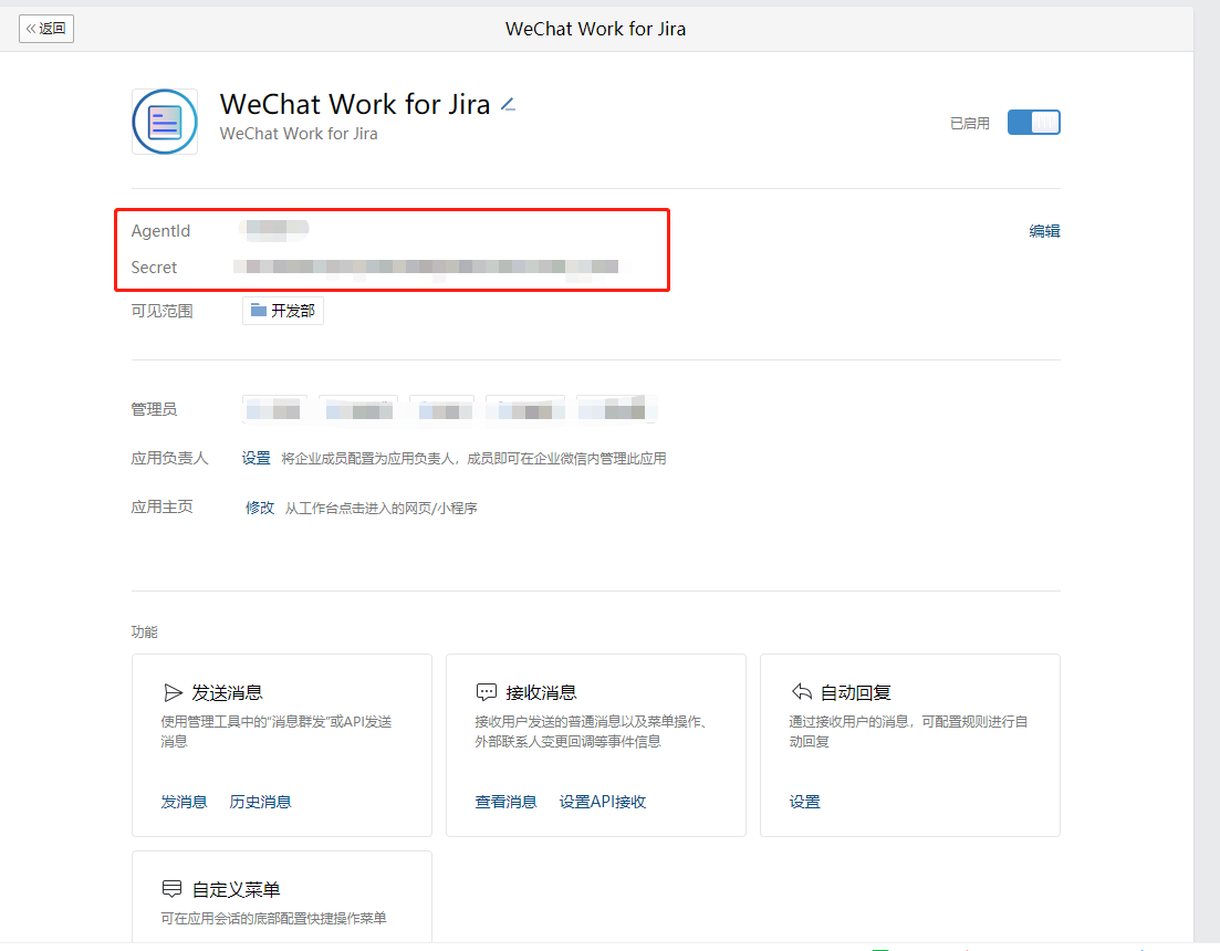 注意:自建应用的可见范围,将会作为 Jira 用户可绑定的企业微信用户列表。
