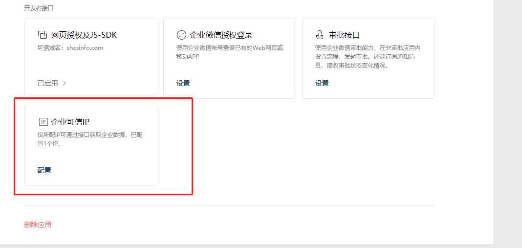 注:如果您当前配置的自建应用是在 2022年6月20日后新创建的,请进行可信IP的配置。