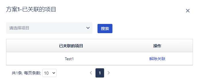 3.5 可查询当前方案关联的所有项目,可解除关联。