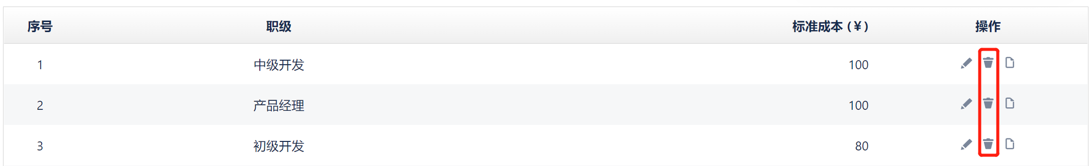 在此页面可以维护各个职级的标准成本,用于总成本的计算。