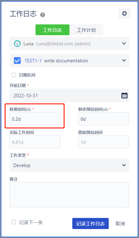 全局工时“天”格式启用后,录入日志/计划只能以“d”为单位: