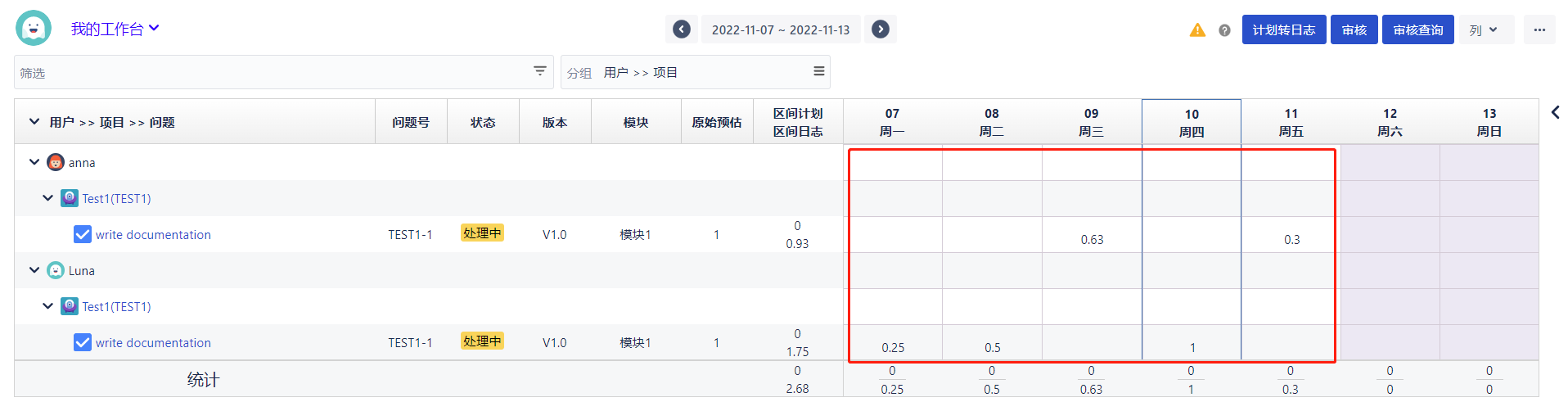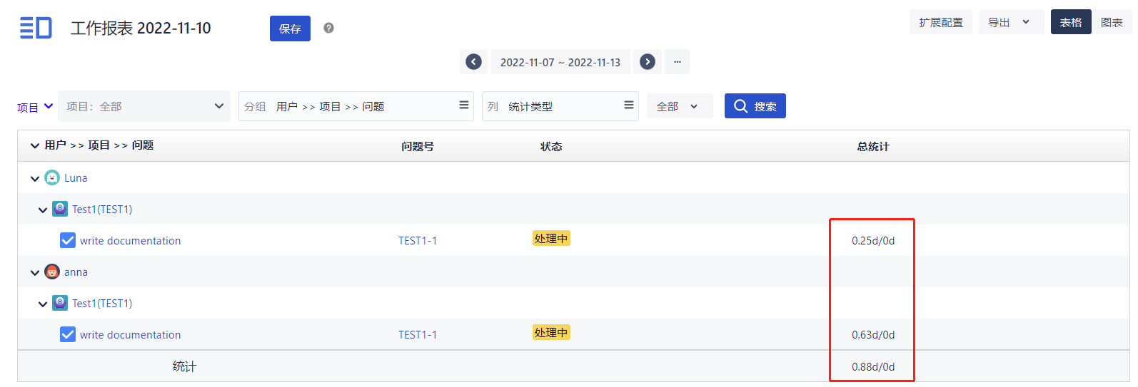 所有工时数据显示均以“d”为单位:
