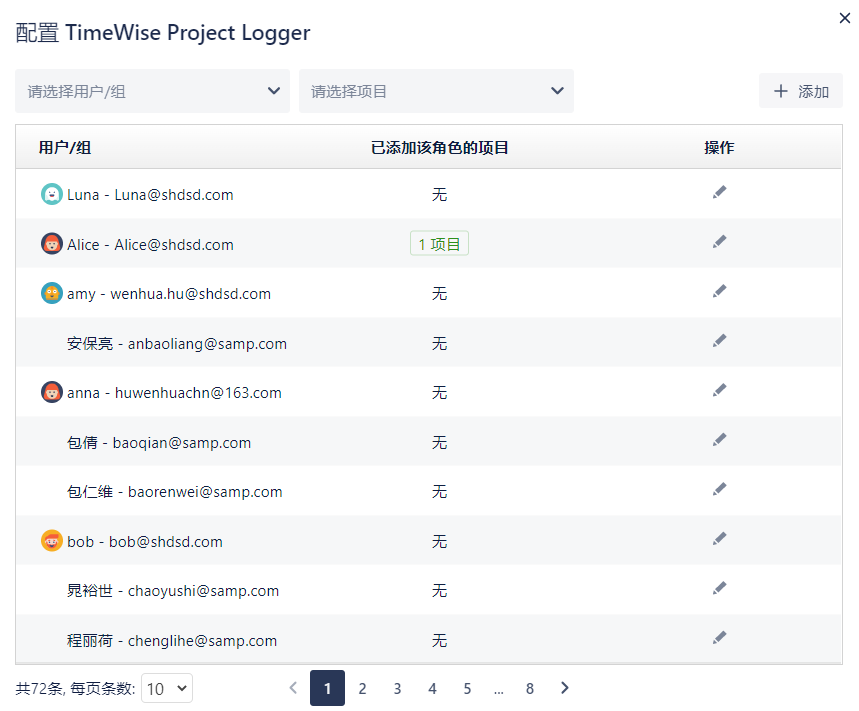 点击上图“配置”,可批量为项目配置 TimeWise Project Logger 这一角色的用户: