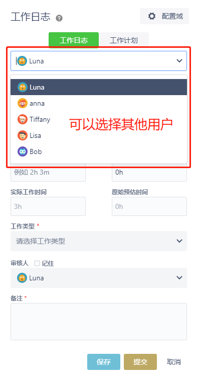可以选择用户,为其他人录日志。