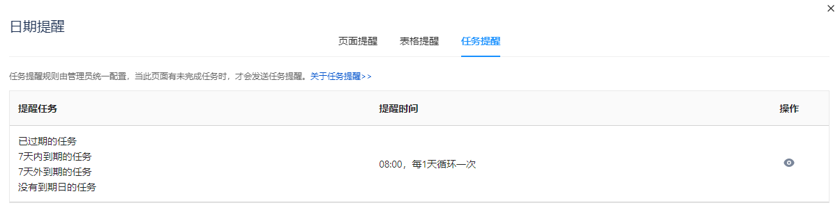 如果您想知道什么时候会收到提醒时,您可以到任意页面中点击 “日期提醒” 按钮: