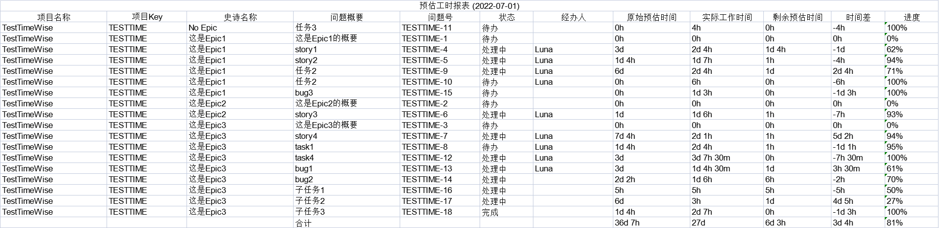预估工时报表可以详细展示各个问题的时间数据,包括原始预估时间、剩余预估时间、实际工作时间,并进行比较,方便项目管理者有效掌握各项工作的进度。