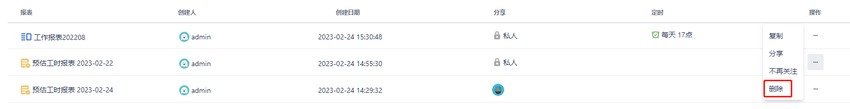 :只能删除自己创建的报表。