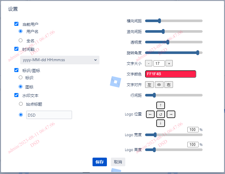 点击“设置”,可设置额外水印。