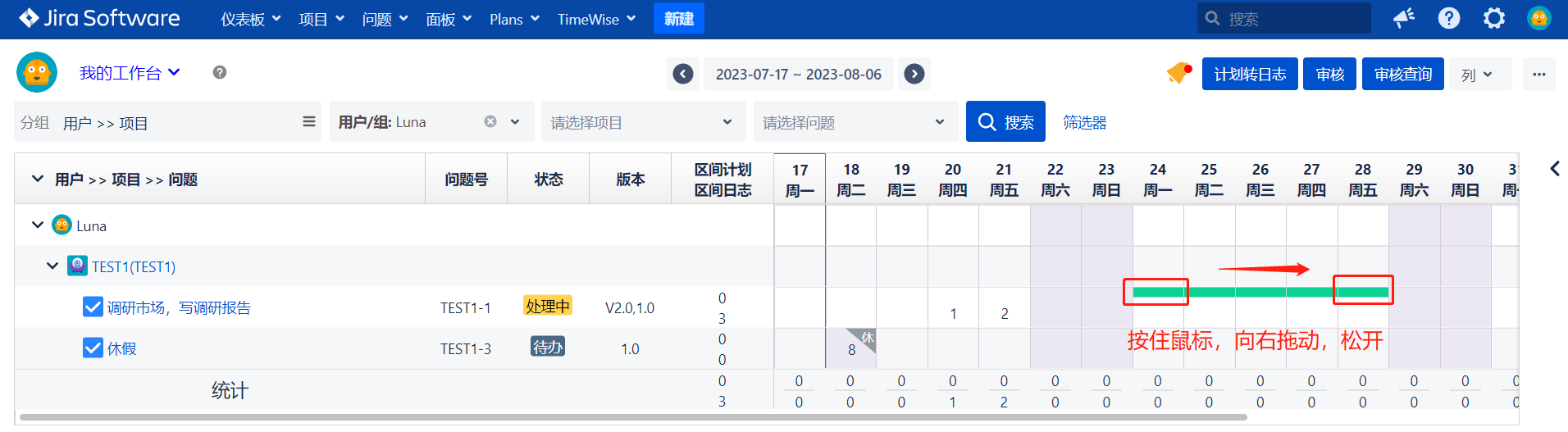 3.3 拖拽只针对于issue(3)有效,若在USER(1),或PROJECT(2)上拖拽,会操作失败。