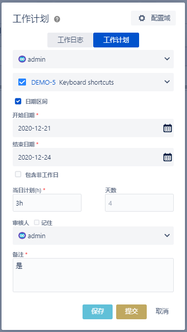 3.4 若全局配置中开启“每人每日允许录入计划X小时”: