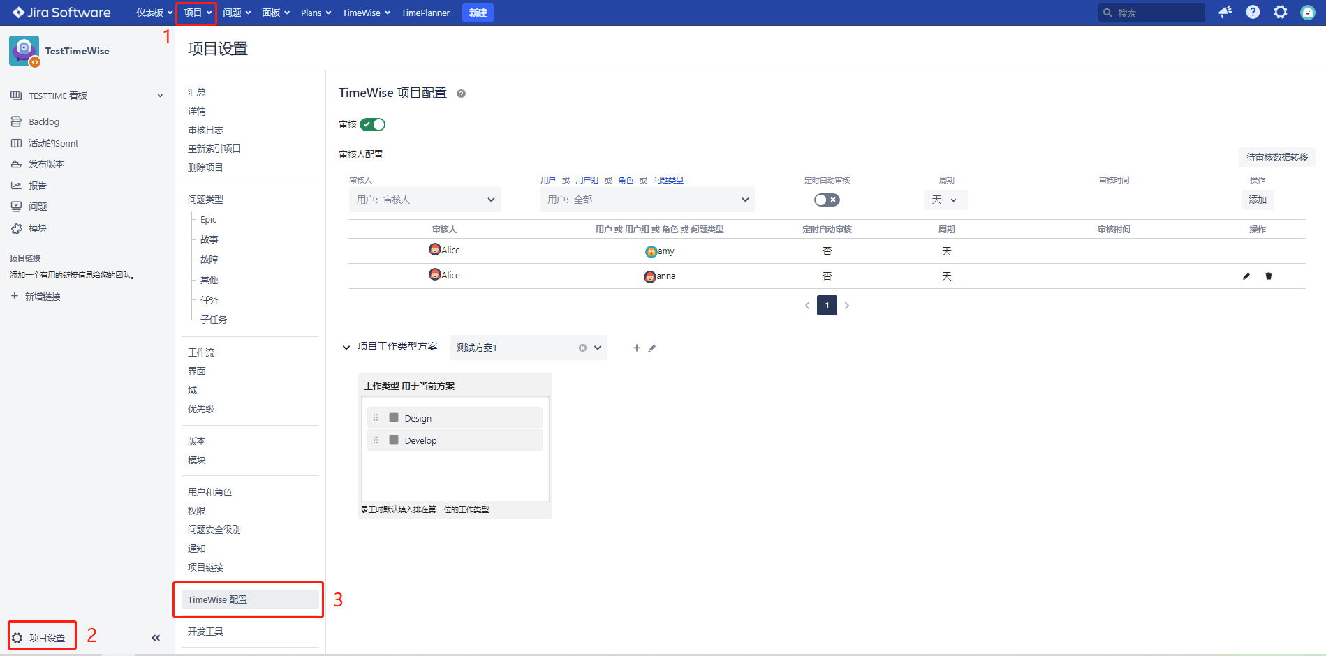 项目设置 >> TimeWise 配置: