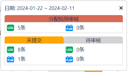 ),显示分配给我待审核的日志与计划统计信息: