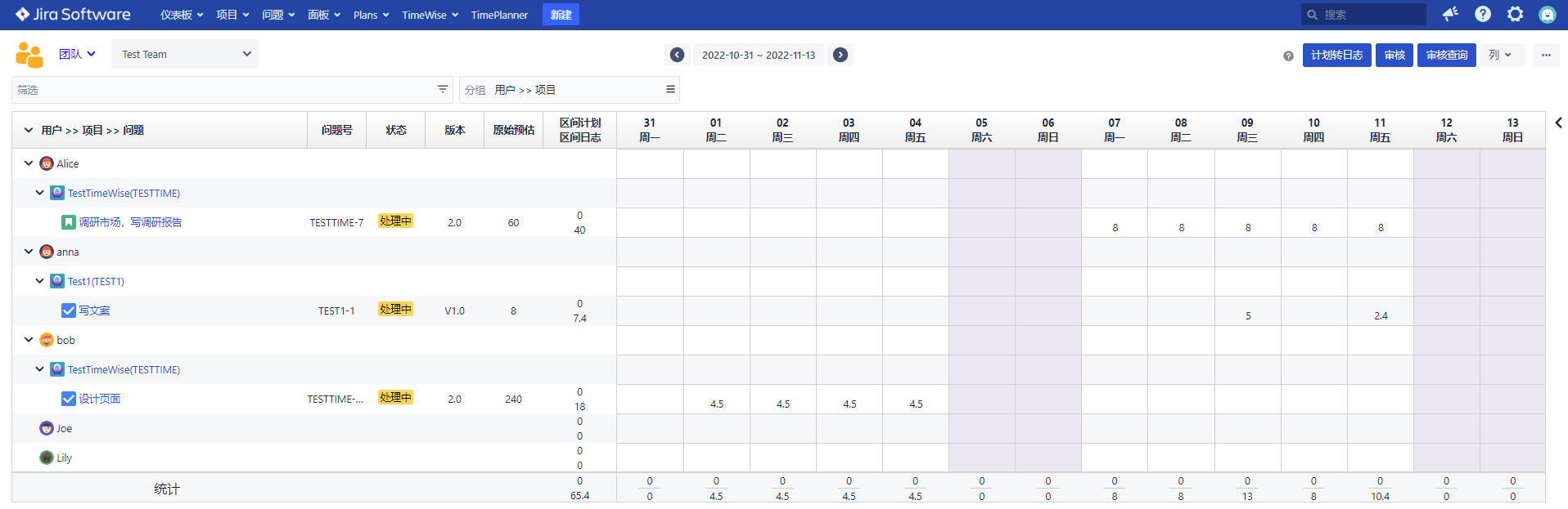 选择团队后,会展示团队成员在团队项目中录入的工时,注意了,既不会展示团队成员在非团队项目下录入的工时,也不会展示非团队成员在团队项目下录入的工时。