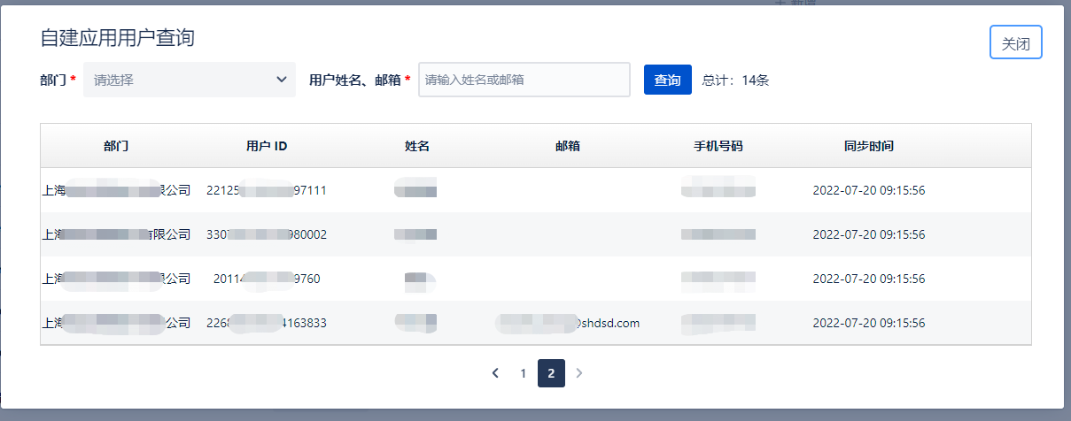 保存成功之后,点击【查看用户信息】,可查看从钉钉同步过来的用户,若是有钉钉用户的变更,可进行”同步成员“操作。
