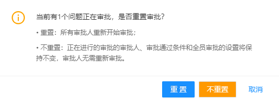 后续如果有问题因满足该审批规则需要审批时,审批人、审批通过条件和全员审批的设置将按照修改后的值确定。